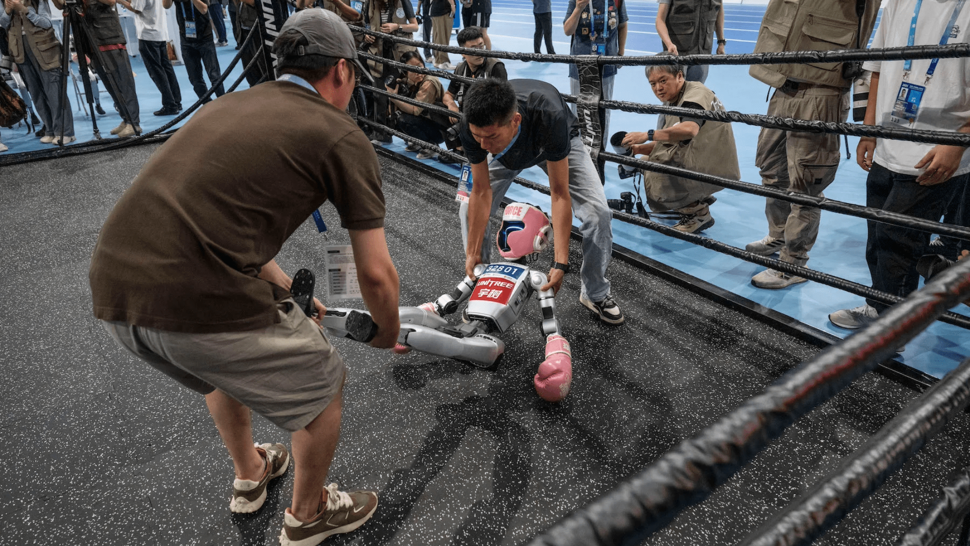 The Humanoid Games were, for all intents and purposes, a failure. But they were not even the first high-profile case of Chinese-made humanoid robots flopping in public. Months earlier in May, robot maker Unitree streamed what it dubbed the worldâs first boxing match between humanoid robots. The event pitted four 4.3-foot-tall Unitree humanoids, outfitted with boxing gloves, against one another in tournament-style fights. Unlike some of the robots featured in the Humanoid Games, these bots were all remotely controlled by engineers.